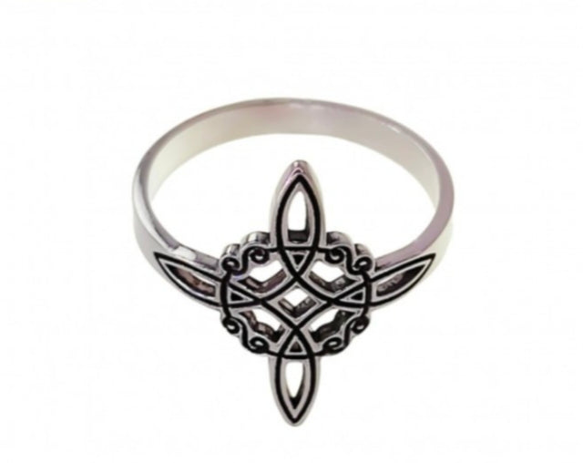 Sortija en plata de ley 925,diseño nudo de bruja, con relieve en color negro. Apunta tu talla en
