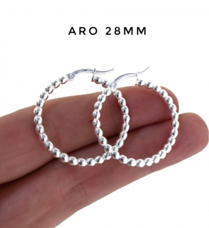 Aros de Plata de Ley 925, preciosos Pendientes de Aro formado por bolitas con cierre Criolla, pendientes de 28mm, un tamaño ideal para que sean vistosos y lucir en cualquier ocasión