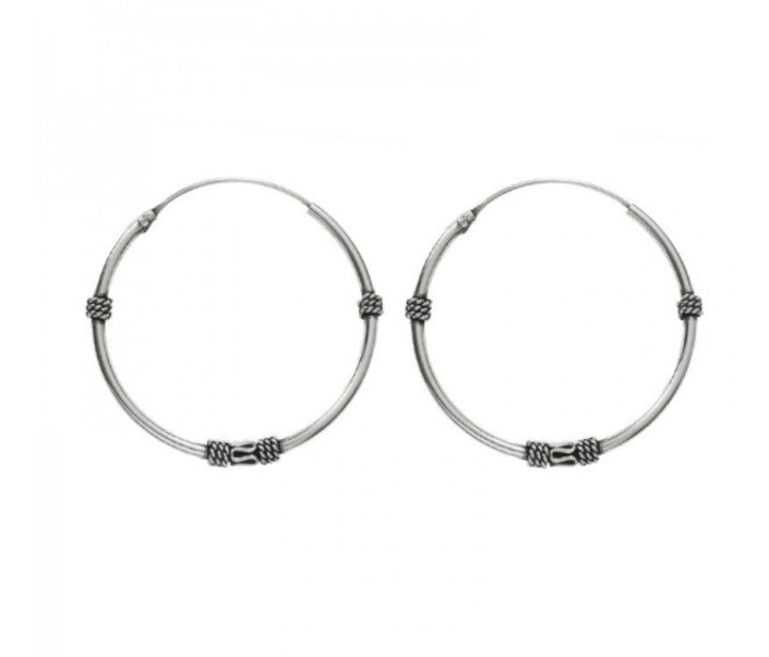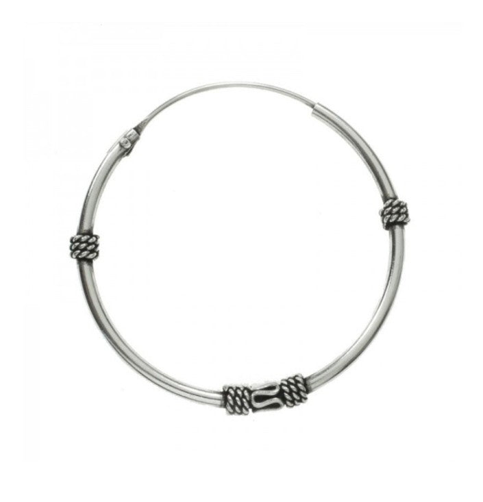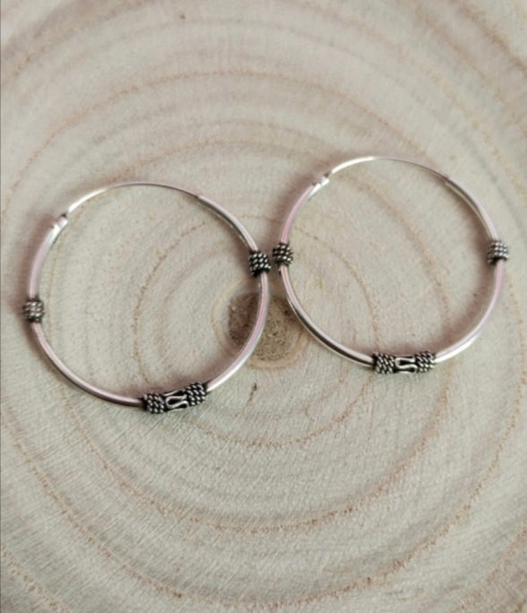 Aros Bali, bonitos Aros de plata de Ley con diseño de cuerda y resorte, medida de 25mm de diámetro y 30mm a elegir.