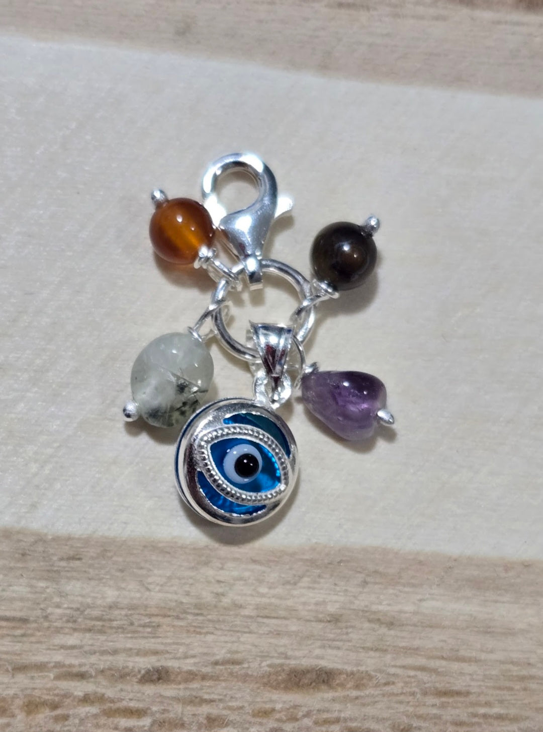 Este colgante con Ojo Turco es el complemento perfecto para quienes buscan protección, buena energía y estilo en una sola pieza. Su diseño con mosquetón permite colocarlo fácilmente en collares, pulseras, bolsos o llaveros, adaptándose a cualquier look y ocasión.