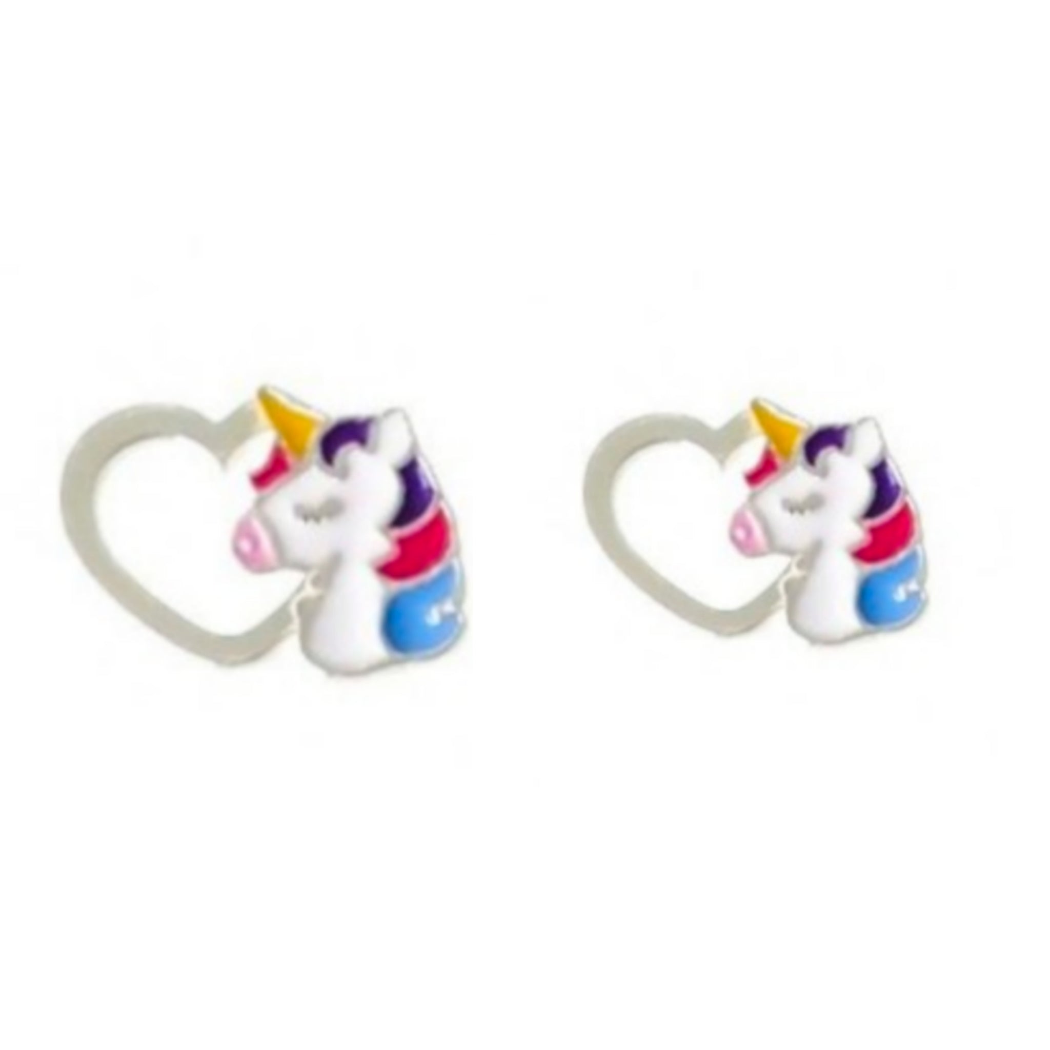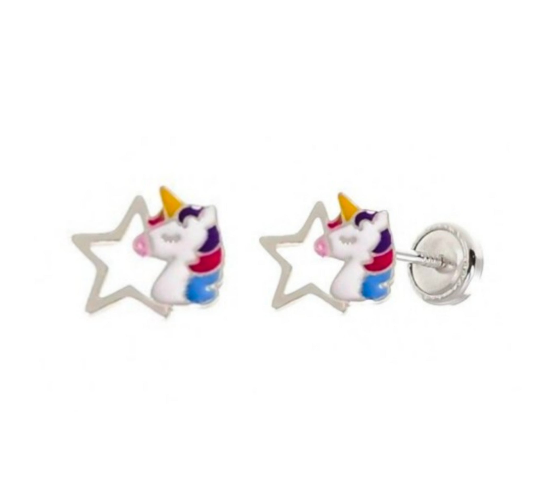 Pendientes Unicornio en Plata de Ley 925, pendientes en forma de unicornio con cierre de rosca y adorno a elegir entre corazon, luna o estrella