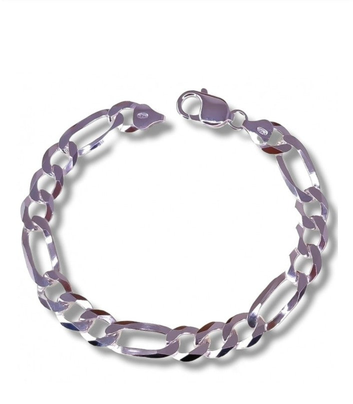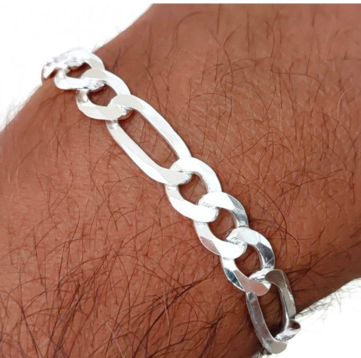 Preciosa pulsera de caballero en plata de ley 925, cadena de eslabones alternos 3 + 1 de 9mm de ancho y 20,5 cm de largo.