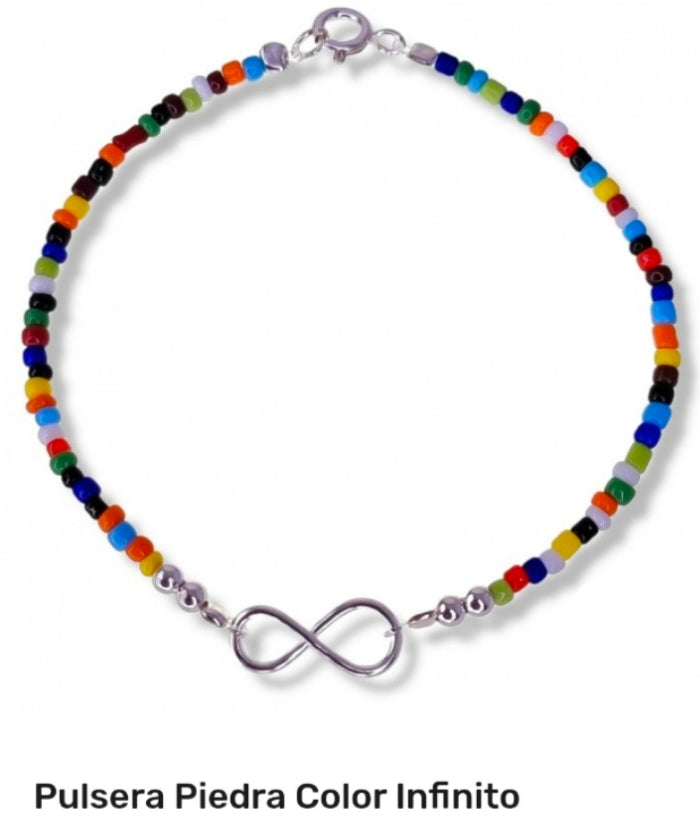 Pulsera piedras de colores, en plata de ley 925, con bolitas lisas y adorno colgante con forma de corazón, estrella o infinito. Elige la que mas te guste.